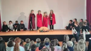 Im Nachgang konnten die Kinder den Darstellern Fragen stellen. So wurde beispielsweise gefragt, wie lange die Gruppe zur Einstudierung des Stückes benötigt habe und ob es schwer sei, sich den vielen Text zu merken.
